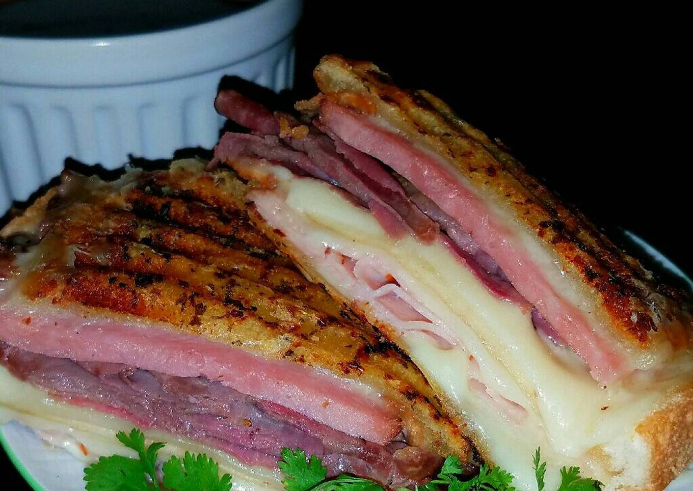 - Butter bread and add Swiss cheese, ham, roast beef, Provolone cheese, plain bread, Swiss cheese, turkey and another slice of Provolone.