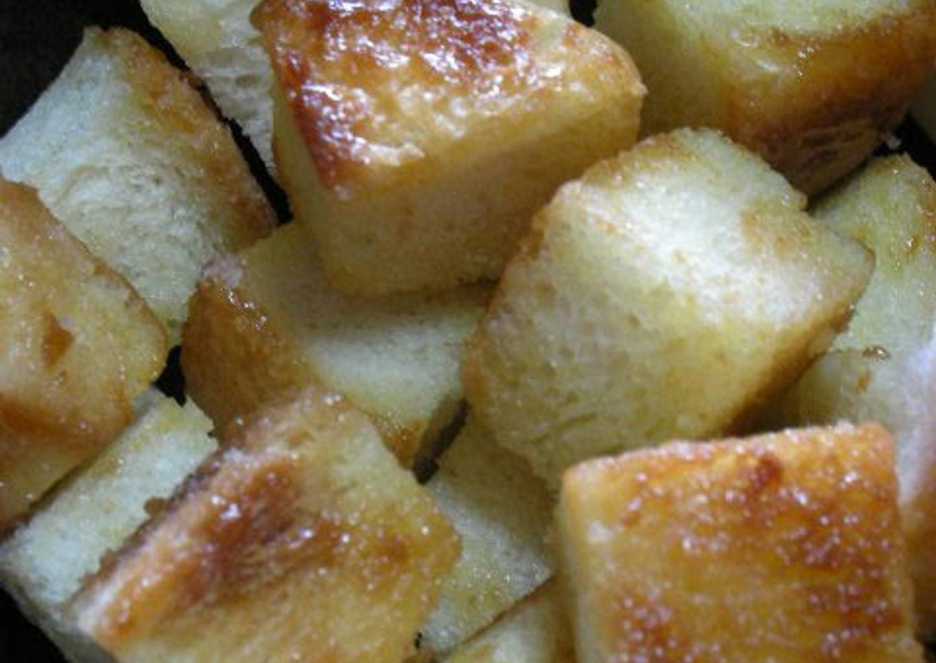 - Heat a frying pan and add your preferred amount of butter and sugar. Add the crispy bread and coat.