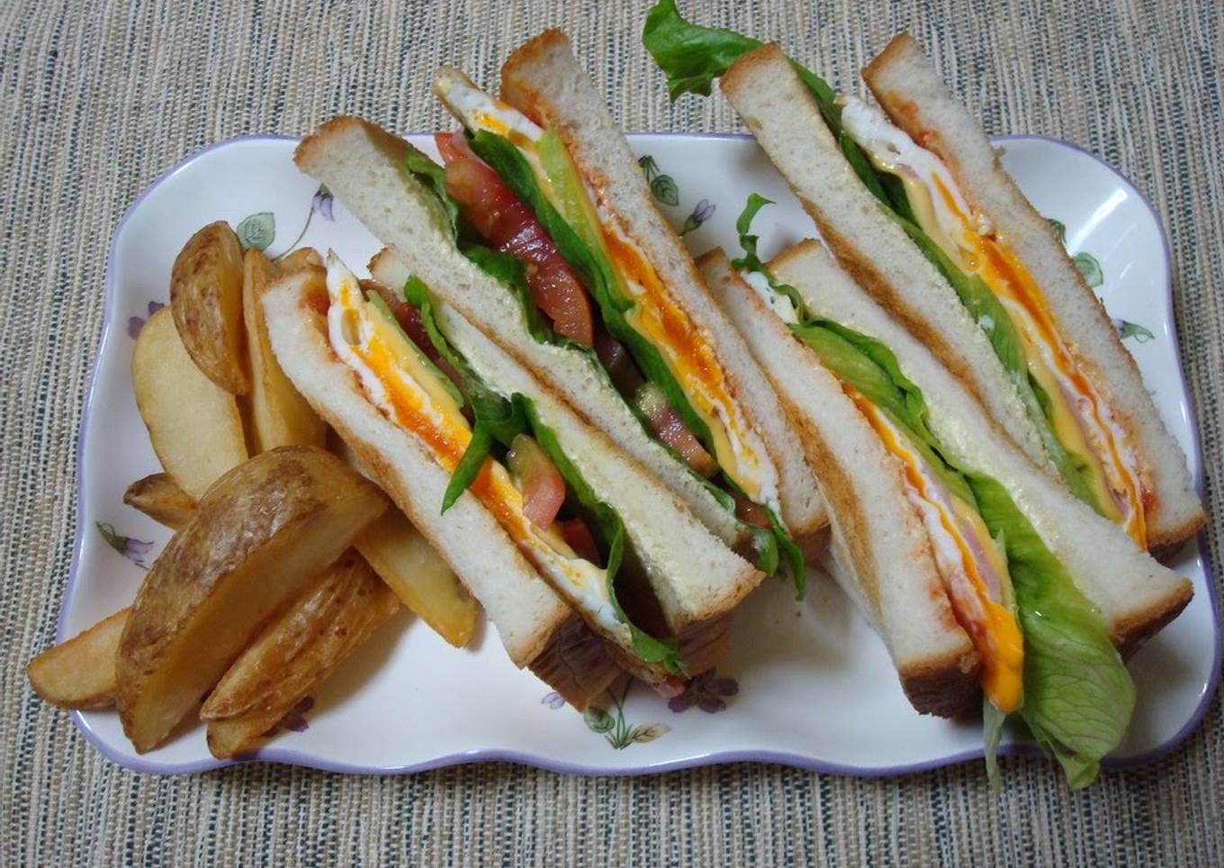Because my husband doesn't like vegetables, I usually make it only with bacon, eggs, and cheese. This time, since I'm posting this recipe, I added lettuce and tomatoes to make it more colorful.
