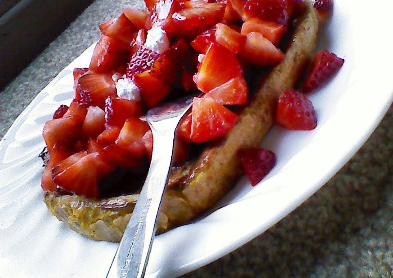 - Sprinkle fresh chopped strawberries over the toast.