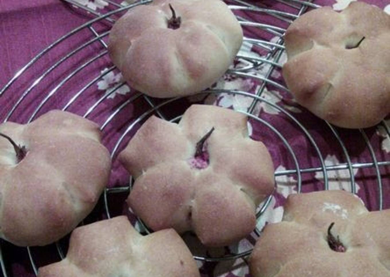 I often see the sakura bean paste buns at bakeries so I tried making some myself.