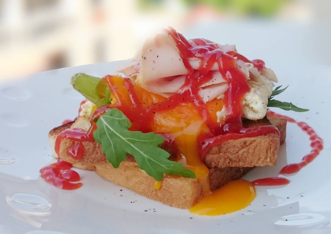 - Stack the salad,ham and eggs and then spread some sauce of your choice and enjoy
