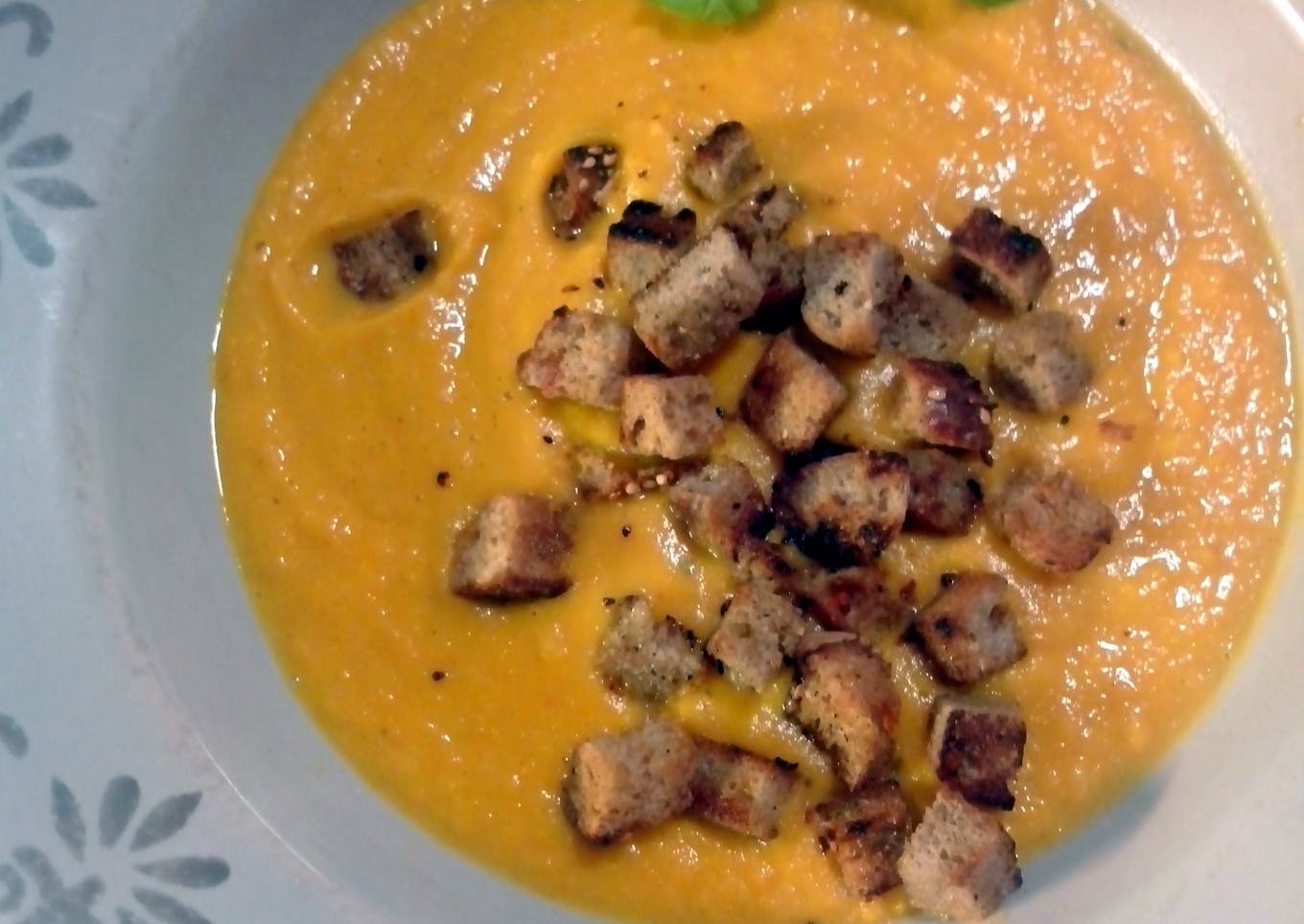 - fry the croutons in melted butter in about 5 Minutes, stirring constantly. do not let it burn!