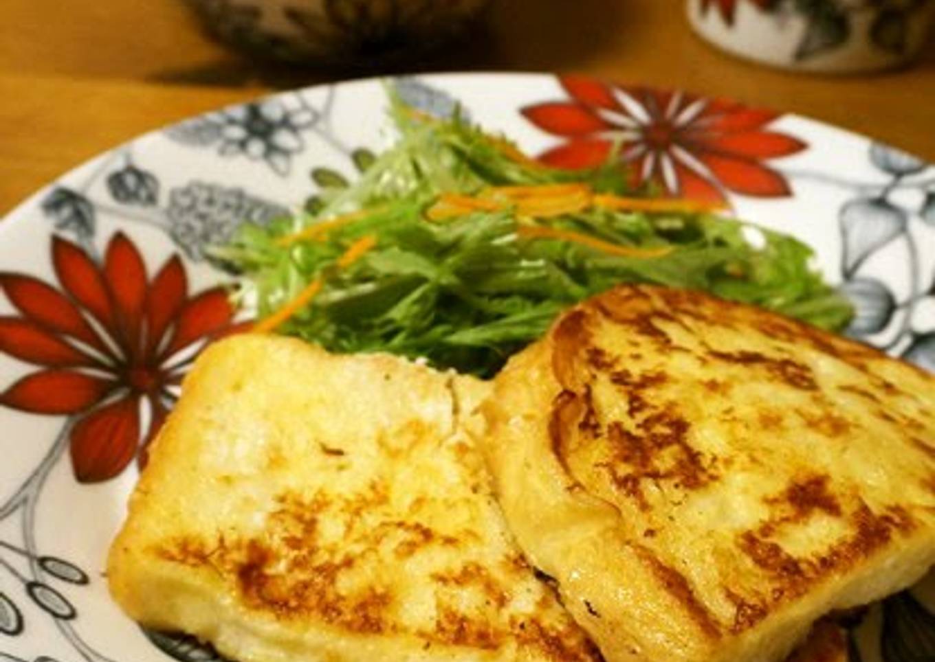 -Make sure to soak the mixture into the toast by flipping them over. You can change the amount of sugar to your liking. If you are using a large frying pan, you can grill 2 pieces of